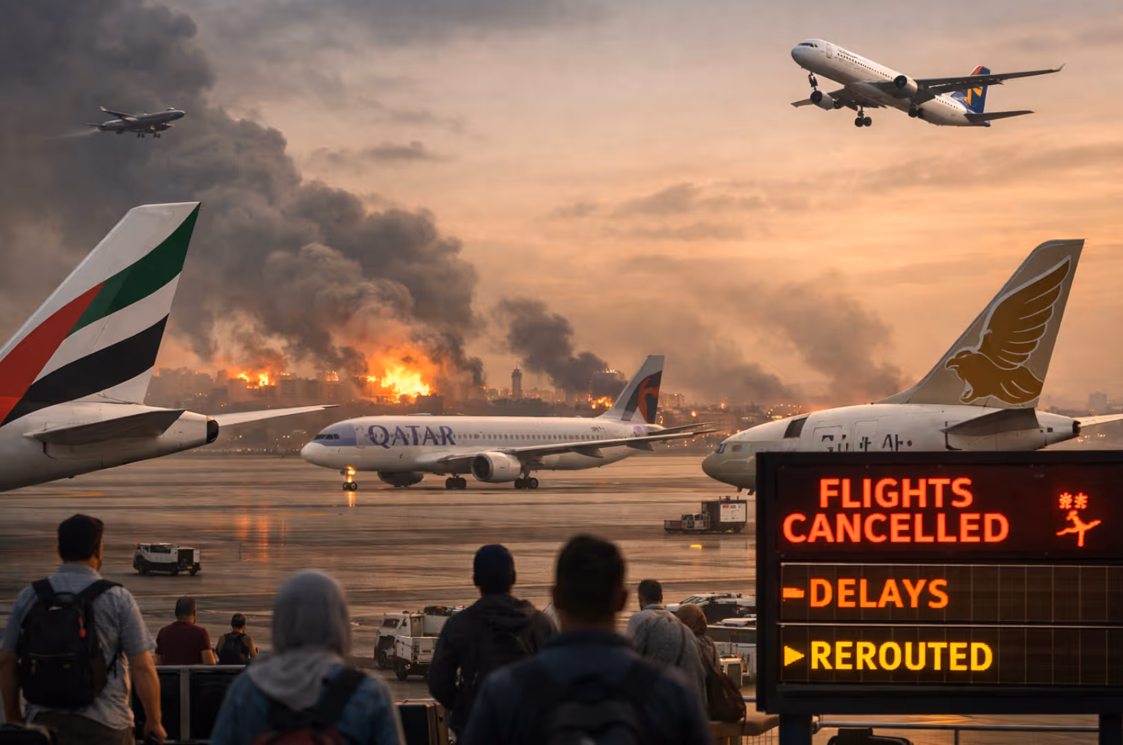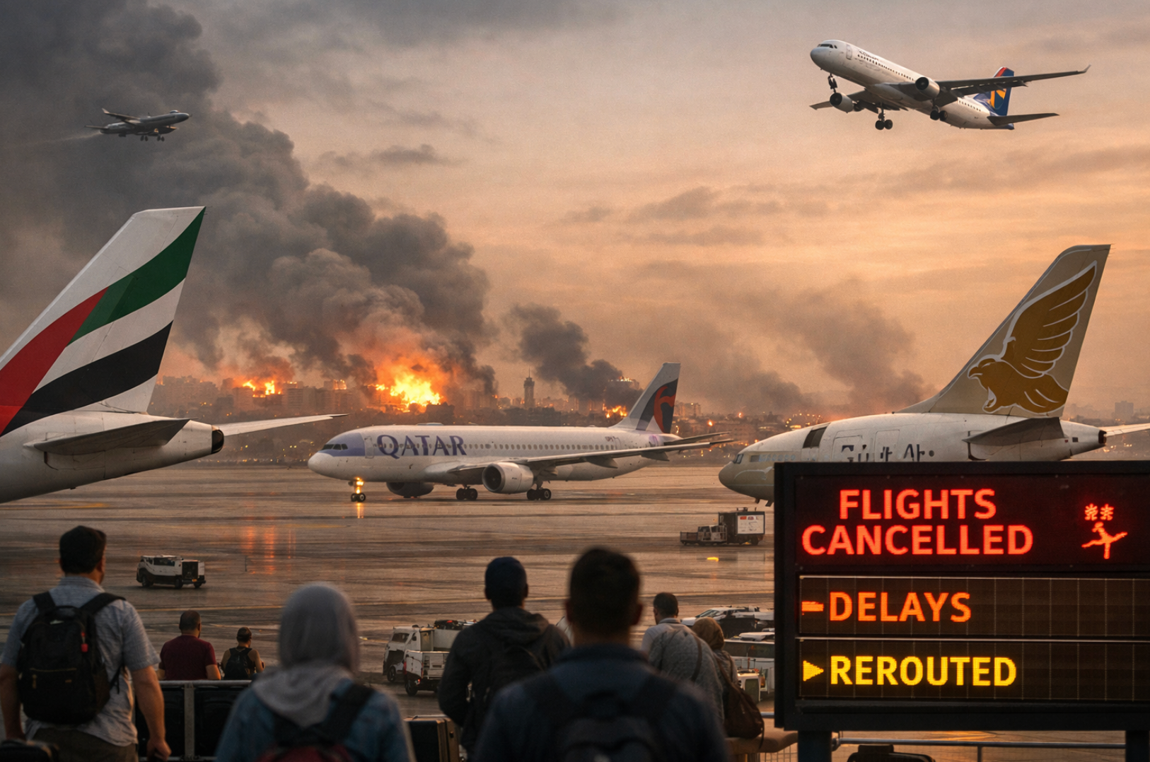 The escalating war in the Middle East has triggered massive disruption in global aviation, forcing airlines to cancel or reroute flights across the Gulf region. As tensions intensified and several countries closed their airspace, airlines suspended operations to major destinations including cities in the United Arab Emirates, Bahrain, Qatar, and Saudi Arabia. The ongoing conflict has created one of the most significant aviation disruptions in recent years, leaving thousands of passengers stranded and forcing airlines to make rapid adjustments to ensure safety.