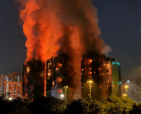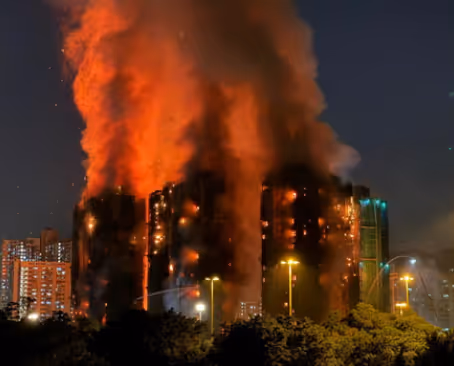A devastating fire swept through high-rise residential blocks in Hong Kong, leaving at least 65 people dead and hundreds unaccounted for. Emergency crews battled intense flames and heavy smoke as desperate residents were evacuated or trapped inside. Authorities say the cause of the blaze remains under investigation, while hospitals report being overwhelmed with injured survivors. The disaster marks one of the deadliest urban fires in the city’s recent history, prompting urgent questions about building safety and emergency response.