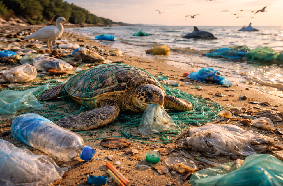 Plastic pollution has become a major environmental threat, harming ecosystems and accelerating species extinction worldwide. Millions of tons of plastic waste enter oceans and natural habitats each year, endangering marine life, wildlife, and biodiversity. Animals often ingest or become entangled in plastic debris, leading to injury or death. As pollution spreads through ecosystems and food chains, scientists warn that urgent global action is needed to reduce plastic waste and protect the long-term health and stability of the planet.