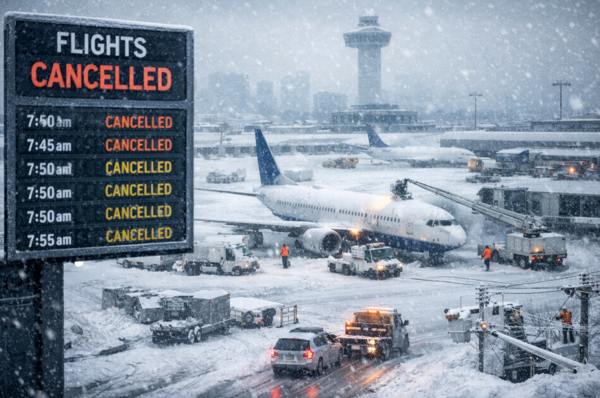 Air travel faced the most immediate and visible disruption. Major airports along the East Coast were forced to suspend operations as runways became covered in snow and ice. Airlines cancelled thousands of flights, leaving travelers stranded and forcing carriers to reschedule or reroute services. Some airports temporarily halted departures to allow crews to clear snow from runways and taxiways, while others struggled to maintain operations amid freezing temperatures and strong winds.